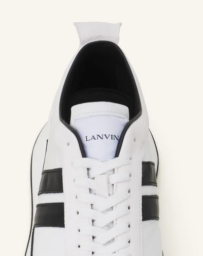 The CLAY Mesh Lanvin Sneakers in Blanc/Noir bring a luxurious edge to contemporary streetwear. Expertly crafted from premium Italian leather, they feature Lanvin’s iconic oversized silhouette, enhanced by a padded tongue and chunky sole for a striking, fashion-forward presence. The signature herringbone-patterned laces introduce a playful yet sophisticated detail, while the clean white finish ensures effortless versatility. Built for both comfort and long-lasting wear, the Curb Sneakers seamlessly merge high-end design with everyday functionality. With their blend of sophistication and urban flair, Lanvin’s white leather Curb Sneakers elevate casual style into a statement of modern elegance.