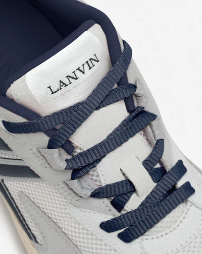 The JLA Mesh Lanvin Sneakers in black and green Navy Blue/Grey redefine modern streetwear with a touch of luxury. Crafted from premium Italian leather, they highlight Lanvin’s signature oversized silhouette, complete with a padded tongue and chunky sole for a bold, standout look. The distinctive herringbone-patterned snack laces add a playful yet refined detail, while crisp white accents ensure versatile styling with any outfit. Designed for both comfort and durability, the Curb Sneakers balance fashion-forward design with everyday wearability. Blending sophistication and urban edge, Lanvin’s white leather Curb Sneakers elevate casual style to an effortlessly elevated level.